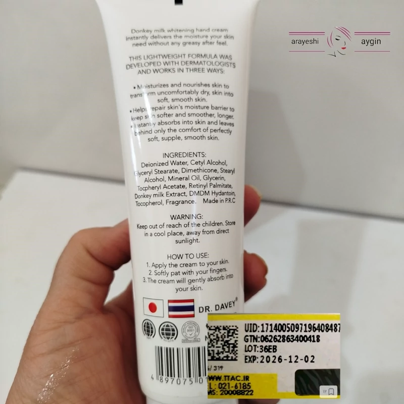 کرم روشن کننده و مرطوب کننده دست شیر الاغ