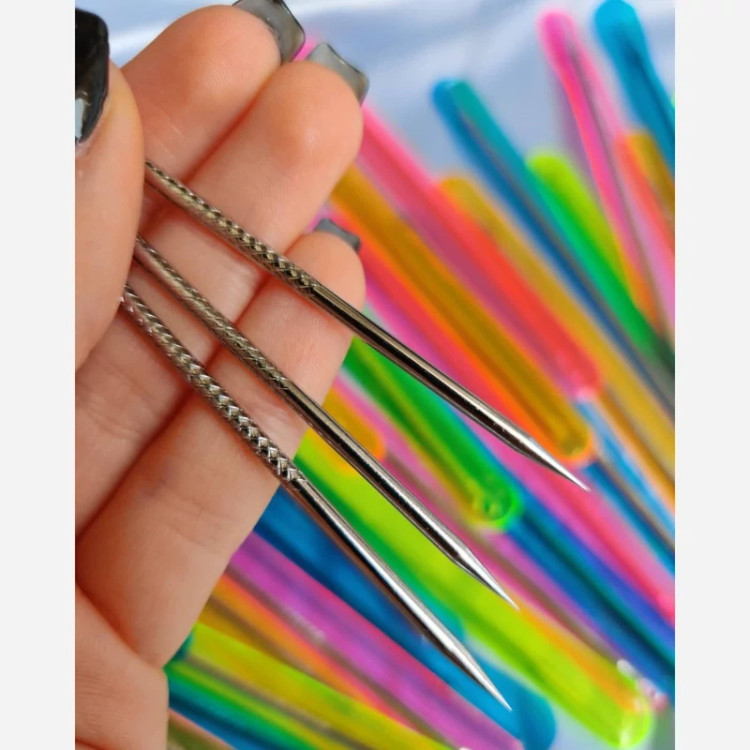 با سر تیز روی جوش یک روزنه ایجاد میکنیم و بعد سر گرد را روی اون روزنه میذاریم و فشار میدیم جوش زیرپوستی کاملا تخیله بشه😍